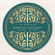 Gold Teal Royal Medieval Sword Wedding Underlägg Papper Rund