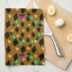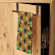 gold textured triangles black diamonds and neon green gradient rectangles on an ochre background