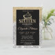 Gold glitter tiara on silver and gold glitter bokeh ombre Sweet 16 birthday party invitation.