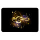 Jewelry, gold, musical treble clef with golden notes and stars on black glowing background.