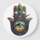 Gold Violet Teal Hamsa w/ Turquoise Third Eye Stor Klocka