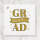 Gold and white graduation with class year inside a banner ribbon and decorative star accent.