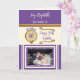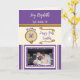 Ett hälsningskort för Guld Bröllop-årsdagen. För make eller fru. Lägg till namn, foto och initialer. 50 lycklig tillsammans. Lila och grädde, med kärlek-hjärtan och virvelformar. Jag har tur.