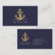 Gold rope wraps around a gold toned anchor on this pinstriped navy blue business card. Text is customizable.
