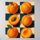Each apricot — from its velvety skin to its stone-filled center — is illustrated in warm, realistic detail, giving this piece a gentle charm and natural depth. The checkerboard layout provides a clean, graphic balance that makes the fruit pop while keeping the aesthetic modern and minimal.