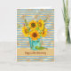 Golden Bröllop-årsjubileum med solrosor och bin, en strimlad bakgrund för guld färgad och andra blommor. Orden på insidan kan ändras. Tack vare Kreativet Fabrica för en del av inslag i designen.