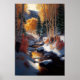 Golden Aspen Träd i Snö vid floden Poster