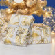Modern och vacker guld-, gula blommor- och löv-vridning på vit bakgrund