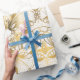 Modern och vacker gyllene och gula blommor och löv snurrar runt på vit bakgrund