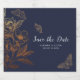 elegantens etikett har en marin blå bakgrund med lyxfri blommigt av folie från guld och löv, vilket ger en aning sofistikering och romantik. Etiketten visningar "Spara datum" på en framträdande plats i ett kursivt skript för eleganten, skapar perfekt för meddelanden i bröllop eller speciella firande. Anpassa med din bröllop-information och hitta matchande utformningar från min "DreamHut"-butik.