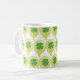 En lyckligt monokabulär kaffe mugg, den här St. Patrick-designen har roligt och färgstark grönt fyra löv klöver på vit bakgrund. I mitten finns ett ställe som infogar ditt monogram som första steg. Anpassa din i dag! Bild skapat av: AMBillustrations http://www.etsy.com/shop/AMBillustrations/