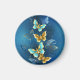 Sammansättning av flygande, smycken, guld och mörk fjärilar på texturerad smyckesbakgrund. Golden Butterfly.