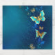 Flygande guld, smyckesfjäril på blå texturbakgrund. Design med fjärilar.