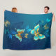 Golden Butterflies på en blå bakgrund Fleecefilt
