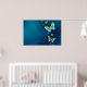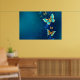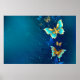 Flygande guld, smyckesfjäril på blå texturbakgrund. Design med fjärilar.