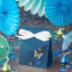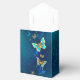 Flygande guld, smyckesfjäril på blå texturbakgrund. Design med fjärilar.