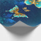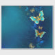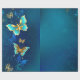 Flygande guld, smyckesfjäril på blå texturbakgrund. Design med fjärilar.