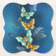 Sammansättning av flygande, smycken, guld och mörk fjärilar på texturerad smyckesbakgrund. Golden Butterfly.