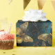 En elegant som är papper med en fjäril mönster i glittrande gyllene nyanser och glödande blåsor.