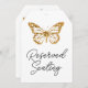 Lägg till lite elegans i bröllop eller evenemanget med vår stora märkre av faux guld-fjäril. Den här enkla men vackra märkrn kan användas för att markera reserverade sittplatser och lägga till en personlig och lyxig beröring på platsen. Beställ utan omslag och ange en egen sträng eller ett eget menyfliksområde.