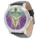 GOLDEN CADUCEUS VETERINARY SYMBOL / Lila Grönt Armbandsur