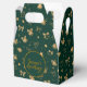 Elegant seamless pattern featuring golden bells, ribbons, and stars on a deep green background. Perfect for wrapping paper, festive stationery, mugs, and gift tags during the holiday season.
