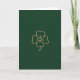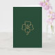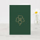 This card features a stylized four-leaf clover in luminous gold, centered on a deep forest-green background 💚. The clover’s heart-shaped leaves meet at a small hub, where fine starburst lines fan out like a gentle spark between close friends. The gold outline has a polished gleam that catches the eye, like jewelry held up for someone special to admire. The setting stays simple and uncluttered, letting the rich green field feel like a quiet evening backdrop for a shared moment. There’s no character scene here, but the soft radiating lines and heart-like leaves suggest closeness and an easy kind of romance. Any greeting text would sit best above or below the clover in matching gold, keeping the layout balanced and easy to read ☘️. The central emblem remains perfectly framed, with the metallic contours standing out clearly against the dark green.