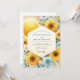 Capture the radiant warmth of a summer day with this stunning artistic arrangement. Vibrant golden sunflowers burst with joy alongside delicate blue and white wildflowers. A painterly depiction of a sun-drenched sky provides a beautiful backdrop for the lush botanical scene, creating a cheerful and romantic atmosphere.