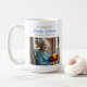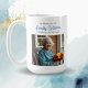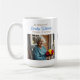 A beautiful coffee mug memorial keepsake for funerals, celebration of life gatherings or to send to friends and family in honor of someone they lost. You can add a photo in the personalized area. The back has a religious poem for comfort to remind you your loved one is in God's arms now. The accent colors used are blue and gold. There is a golden cross with blue flowers on it too.