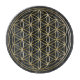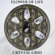 Flower of Life Golden Crystal Grid on Black Cosmos. Golden Crystal Grid har en blomning på 12 x 12 tum. Detta är den gamla geometrin i helig i Flower of Life som används för att läka och ladda med livskraftsenergi för att manifestera förändring, kärlek, skyddsrikedom och mycket annat. Används i Reiki och Chakra-läkning. Det kristallhärdade glaset kan flytta energi genom glaset. Glaskristallstödrastret är stabilt och gör det enkelt att flytta runt medan kristallerna fortfarande finns på det. Underbar även för altarer.