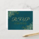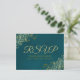 Golden Curls & Swirls on Teal Wedding RSVP Vykort