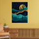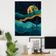 Lägg dig i en drömöken under ett stjärnstuderat himmel med denna fantastiska abstrakt illustration. Den här kosmiska ökenscenen blandar elegans med lugn och lugn och har ett vinkart lager av teal och guld, en silhuetterad cacti och ett glupskt måne.
