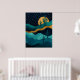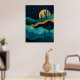 Golden Desert Nightscape - Abstrakt Cactus Art Poster