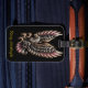 En detaljerad illustration av en guldörn med uppslag mot en svart bakgrund.