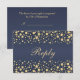 Golden-effekt-konfetti på ett blåskärt grått-bakgrundsinbjudan, platta kort. Du kan justera texten enligt dina önskemål - ändra teckensnitt, färg, storlekt och lägga till personlig information.