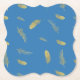 Eleganten underlägg guldfärgade flytande fjädrar på trendigets Fransk blå bakgrund