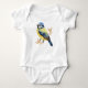 En vackert handmålad vattenfärg av en blå tit som passade på ett skonsamt sätt mellan guldvetestjälkarna. Denna ömtåliga och elegant utformning fångar naturen, perfekten för älskare, landskapsentusiaster och de som uppskattar rustik charm.