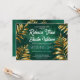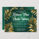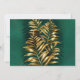 Arrangement of golden, jewelry, glittery, and dark green fern branches and leaves on forest green background. Golden fern.