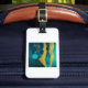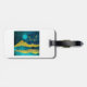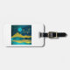 Abstraktens landskapsplanering i fet form av guld, cyan och blått med månuppgång, stjärnor och fåglar.