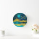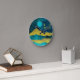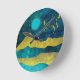 Abstraktens landskapsplanering i fet form av guld, cyan och blått med månuppgång, stjärnor och fåglar.