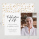 Vänner och familj från inbjudan till sina favorithistorier och minnen med denna elegant firande av livets inbjudan, med ett blommönster i guld på baksidan.