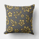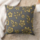 En stor Dekorativ kudde i Guld och vit Blommigt på en svart, simulerad bakgrund