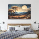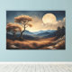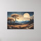 A magical night scene with a bright full moon illuminating a golden field. The contrast between the yellow trees, blue mountains in the background, and starry sky creates an atmosphere of peace and mystery.