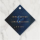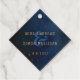 Denna eteriska galaxkonstruktion är perfekt för ett modernt, vismiskt bröllop. Utformningen har en mörk av en marin blått vattenfärgsgalaxi med stjärnor och ett guld-geometriskt ram.