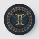 Golden Gemini Zodiac Circle With Starry Night Rund Klocka