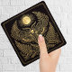 Embrace the mystical with this striking ceramic tile featuring a golden death's-head moth adorned with intricate geometric patterns. Set against a deep navy background, this celestial-inspired design is enhanced by a radiant full moon and delicate botanical elements, evoking an aura of mystery and elegance. It's perfect for adding a touch of esoteric charm to any space, whether as a statement piece or part of a curated gallery wall.