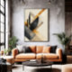Sophisticated abstract composition with geometric shapes in black, gray and gold tones. The intersection of triangles and rectangles creates visual depth and movement. Perfect for modern environments seeking elegance and personality. Every detail is a statement of contemporary art.
