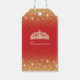 Quinceañera, Glam Glitter Gift-märkre. Designad med gnistor, Golden glitter och guld krona för en fantastisk Quinceañera, 15:e födelsedag. Inbjudan till guld-glitter Quinceañeraas kommer att vara en fantastisk introduktion till er speciella dag, särskilt för tonåringar. Ytterligare samordningsmaterial från Quinceañera party finns på Metro-Events Zazzle-butiken och Metro-Event.com.