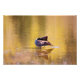 Ett fotografi av en Kanada Goose som grommar sig själv i en liten del av en damm. Gosens perfekt återspeglas tillbaka på vatten, eftersom luddspetsen försiktigt gnuggar vatten. Det omgivande landskapet reflekterar över det är Springtime färg på yta i vatten. Rippor av gult, grönt och brunnymning över dammens yta.