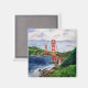 Den här vattenfärgen fångar storheten från Golden Grind Bridge. Synpunkten kommer från presidentens tittar till Marin County på en vacker Kaliforniendag. Återgiven i vattenfärg.